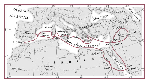 Año 1182. Ibn Yubair, poeta valenciano afincado en Granada y secretario de la cancillería del gobernador Abu Said Utman, decidió que era el momento de peregrinar a La Meca, como es mandato para el islam. Según algunos cronistas, aquel viaje que hizo virar el rumbo de su vida vino motivado por una crisis de fe. Cierto o no, el caso es que tras cruzar el estrecho de Gibraltar se embarcó en Ceuta rumbo a Alejandría en una nave genovesa. Era febrero de 1183. Casi un mes después llegaba a tierras egipcias y gobernadas entonces por el sultán otomano Salah ad-Din Yusuf, más conocido como Saladino, tras pasar por las islas Baleares, Cerdeña, Sicilia y Creta. Después de visitar la ciudad y su famoso faro, y dedicar elogiosas palabras al nuevo gobernante sunní, Yubair partió hacia El Cairo, adonde llegó tres días más tarde. Nuevas visitas y descripciones de la urbe y, cómo no, palabras sobrecogedoras sobre las pirámides. Pero su destino, en un principio, era La Meca, así que prosiguió viaje y remontó el Nilo hasta Asuán, para cruzar luego el mar Rojo, llegar a Yeda, alcanzar La Meca —donde el profeta Mahoma dio inicio a su hégira («migración») en 622—, ciudad en la que permaneció durante ocho meses, y finalizar la peregrinación en Medina. Sin embargo, en lugar de enfilar el camino de regreso a la Península, se animó a proseguir ruta. Tomó rumbo norte hacia Jerusalén, Damasco, Mosul, Bagdad y Acre. Dos años después decidió volver a Granada, vía Sicilia, isla en la que hizo una escala, concretamente en la ciudad de Palermo. Fruto de aquel periplo nació su rihla («libro de viajes»), un testimonio inusual para la época, pues el autor narró de forma pormenorizada no solo los puntos geográficos por los que transitó, sino su experiencia personal, las costumbres locales, la política, los sistemas de fiscalidad, la cultura en general y el estado de las comunidades religiosas, especialmente de la musulmana pero sin olvidar otras, como la judía o la cristiana, presente esta última con notoriedad en Jerusalén tras las Cruzadas. Se tiene constancia de que Yubair viajó dos veces más hacia el levante, pero nada dejó escrito sobre ello. Su libro es una ventana esencial para el conocimiento de la cultura mediterránea medieval.