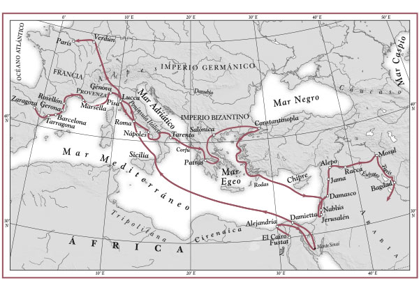 Jerusalén en la ruta de Benjamín de Tudela hacia Oriente.