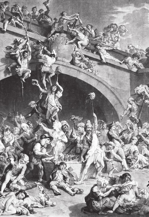 Richard Earlom, El saqueo de la bodega real, 1792, página de un grabado a media tinta que reproduce una pintura de Johann Joseph Zoffany. Science Source / Album.