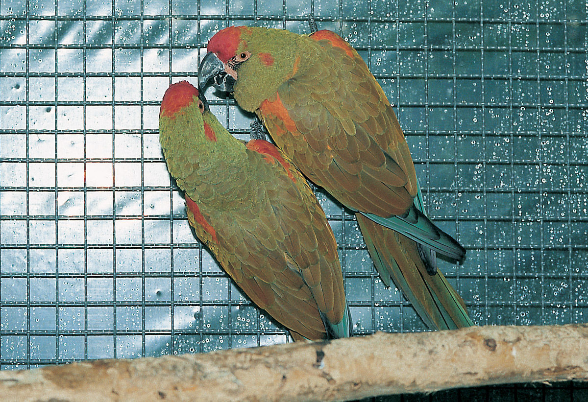 Dos ejemplares de Ara rubrogenys. (Fotografía de D. Balestri)