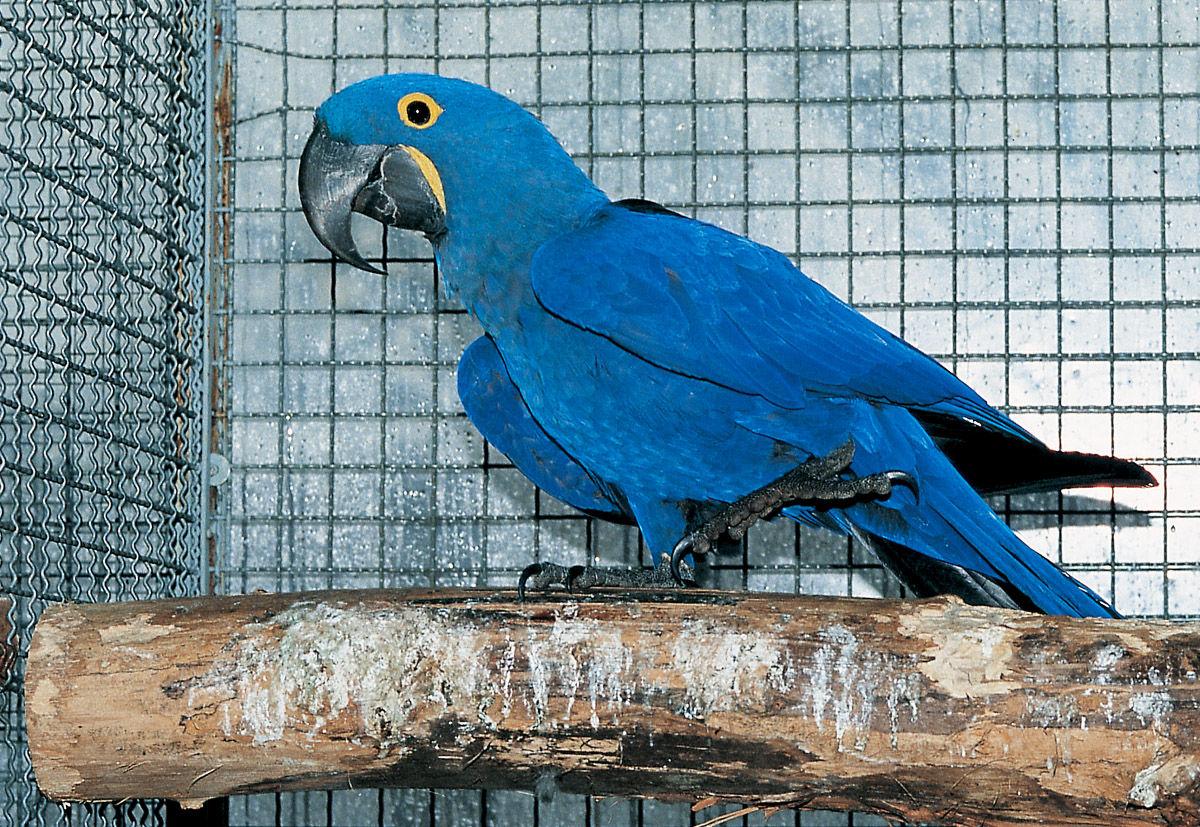 Anodorhyncus hyacinthius, ara jacinto, uno de los papagayos que corre mayor riesgo de extinguirse. (Fotografía de D. Balestri)