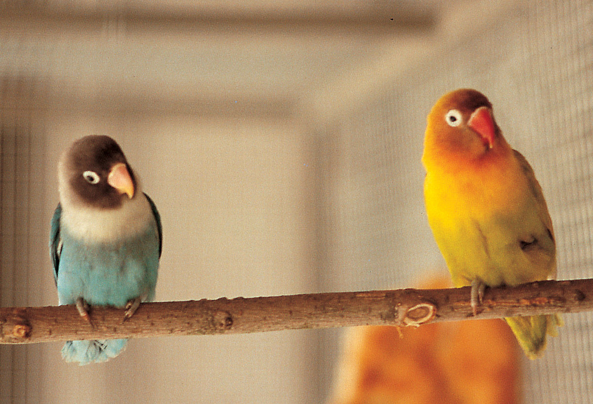 Ejemplares de Agapornis personata (izquierda) y A. fischeri comparados