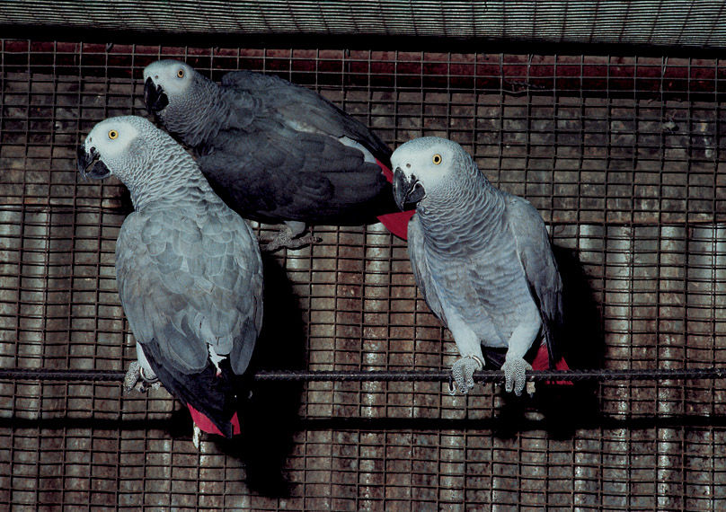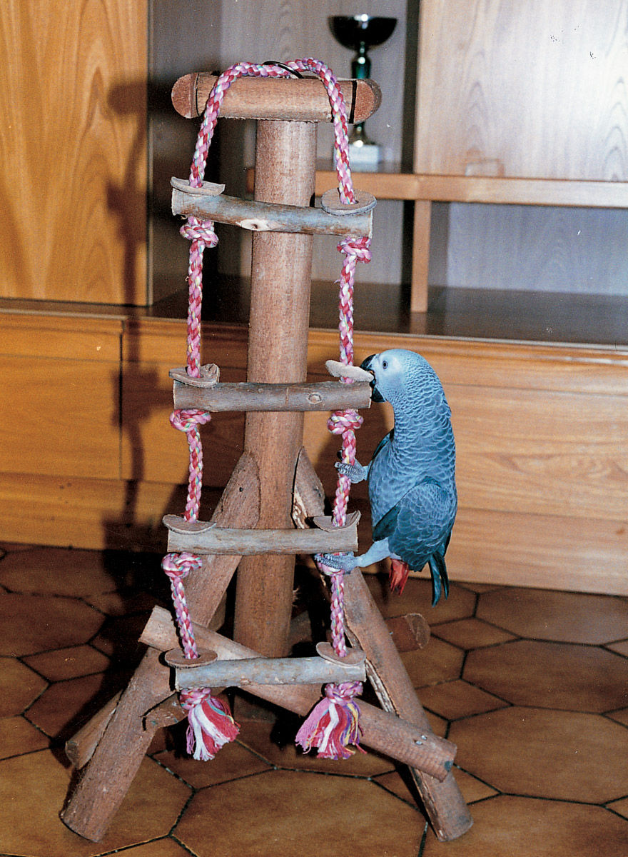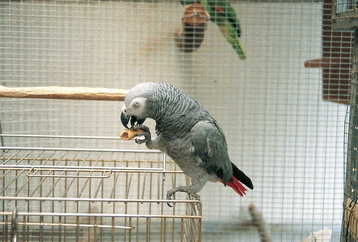 Esto no justifica el uso de jaulas pequeñas, en las que todo movimiento resulta dificultoso. Sería demasiado triste para un ave tan sensible. En la pajarera puede pasar mucho tiempo alisándose el plumaje; en jaulas de buen tamaño se colgará en posiciones extrañas y se columpiará acrobáticamente. Si además le proporcionamos algún juguete, se mostrará interesado y curioso. Resulta también muy interesante observar el intercambio de afecto entre una pareja de loros grises.