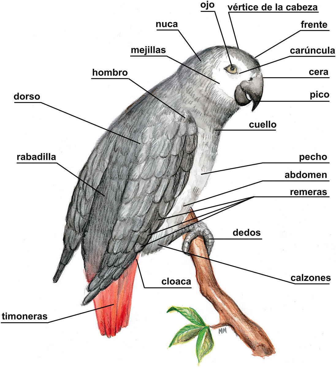 Nuestro simpático loro gris, o yaco, presenta un cuerpo robusto y un aspecto fuerte; tiene un tamaño aproximado de 35 cm.
