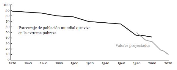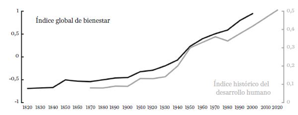 En 2005, comparado con 1955, el ser humano medio del planeta Tierra ganaba casi tres veces más dinero (ajustado a la inflación), comía un tercio más de calorías, enterraba un tercio menos de hijos y su esperanza de vida era un tercio más larga. Tenía menos probabilidades de morir como consecuencia de una guerra, un asesinato, un parto, un accidente, un tornado, una inundación, una hambruna, la tos ferina, la tuberculosis, el paludismo, la difteria, el tifus, la fiebre tifoidea, el sarampión, la viruela, el escorbuto o la poliomielitis. Al margen de la edad, tenía menos probabilidades de padecer cáncer, enfermedades cardíacas o derrames cerebrales. Había más probabilidades de que supiera leer y escribir y de que terminara la escuela. Había más probabilidades de que tuviera un teléfono, un inodoro con cisterna, una nevera y una bicicleta. Todo ello a lo largo de medio siglo en el que la población se ha más que duplicado, un logro humano impresionante.2
