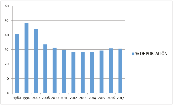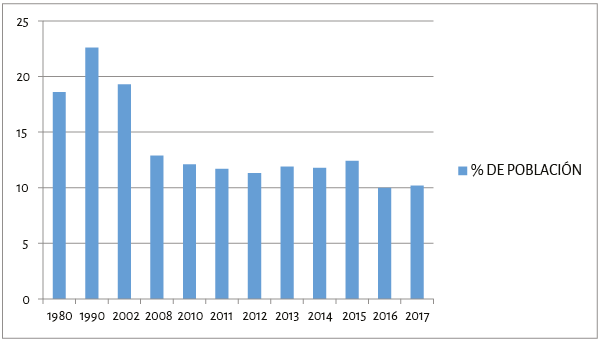 Gráfico 3. Pobreza extrema en América Latina, 1980-2017