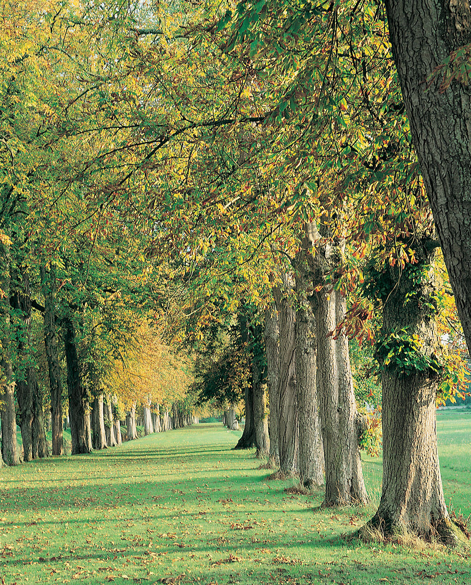 Césped rústico a lo largo de una calle bordeada de árboles, perfecto para pasear. (Fotografía de Maxi Media Italia - 2000)