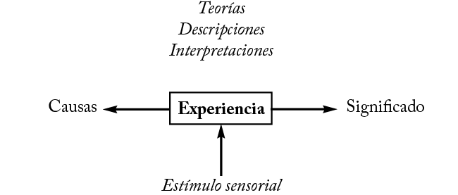 Utilizamos también el término «experiencia» para referirnos al conocimiento acumulado a lo largo de nuestra vida. Toda la información que nos llega por medio de los sentidos es constantemente codificada o envuelta en conocimiento precedente. De este modo, nuestra experiencia constituye la materia prima a partir de la cual creamos nuestros propios mapas o modelos del mundo.