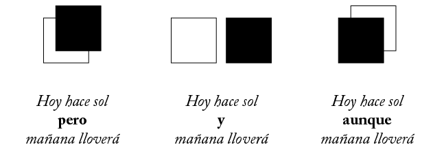 Esta clase de encuadre y «reencuadre» verbal ocurre en todos los casos, con independencia de cuál sea el contenido que se expresa. Por ejemplo, las afirmaciones «Hoy me siento feliz, pero sé que no durará», «Hoy me siento feliz y sé que no durará» y «Hoy me siento feliz, aunque sé que no durará», generan cambios de énfasis similares a los de las declaraciones anteriores, referentes a la climatología. Lo mismo sucede con las expresiones «Deseo alcanzar mi objetivo, pero tengo un problema», «Deseo alcanzar mi objetivo y tengo un problema» y «Deseo alcanzar mi objetivo, aunque tengo un problema».