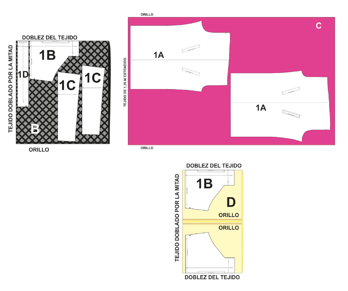 Antes de empezar organiza las piezas del modelo y los materiales que vas a necesitar. Recuerda que el margen de costura es de 1,5 cm. Lo que quiere decir que desde el canto del tejido a la línea de la costura tiene que haber 1,5 cm.