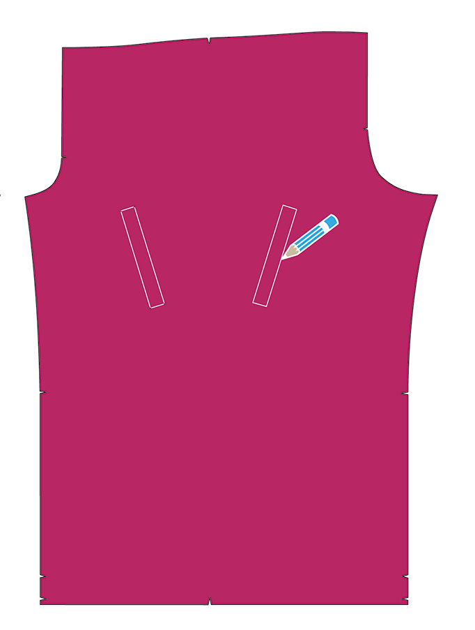 Marca la posición de las cremalleras por el lado derecho de la pernera del lado izquierdo, siguiendo los taladros marcados en el patrón —número 1 en el patrón—.