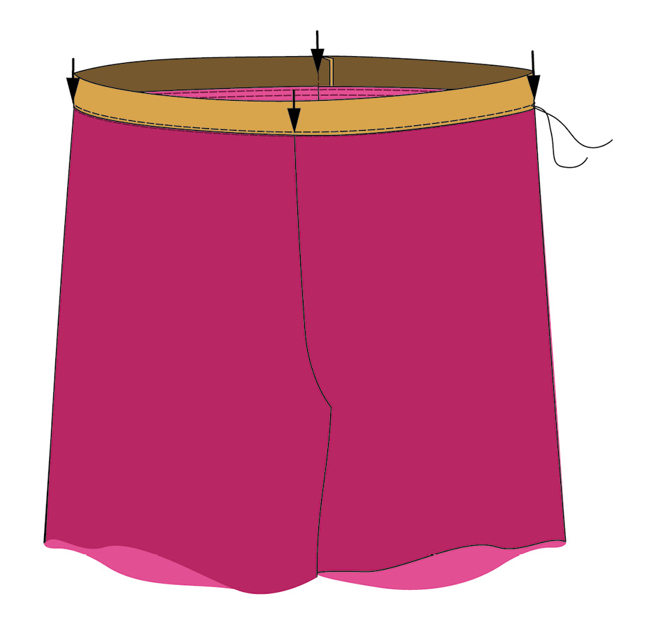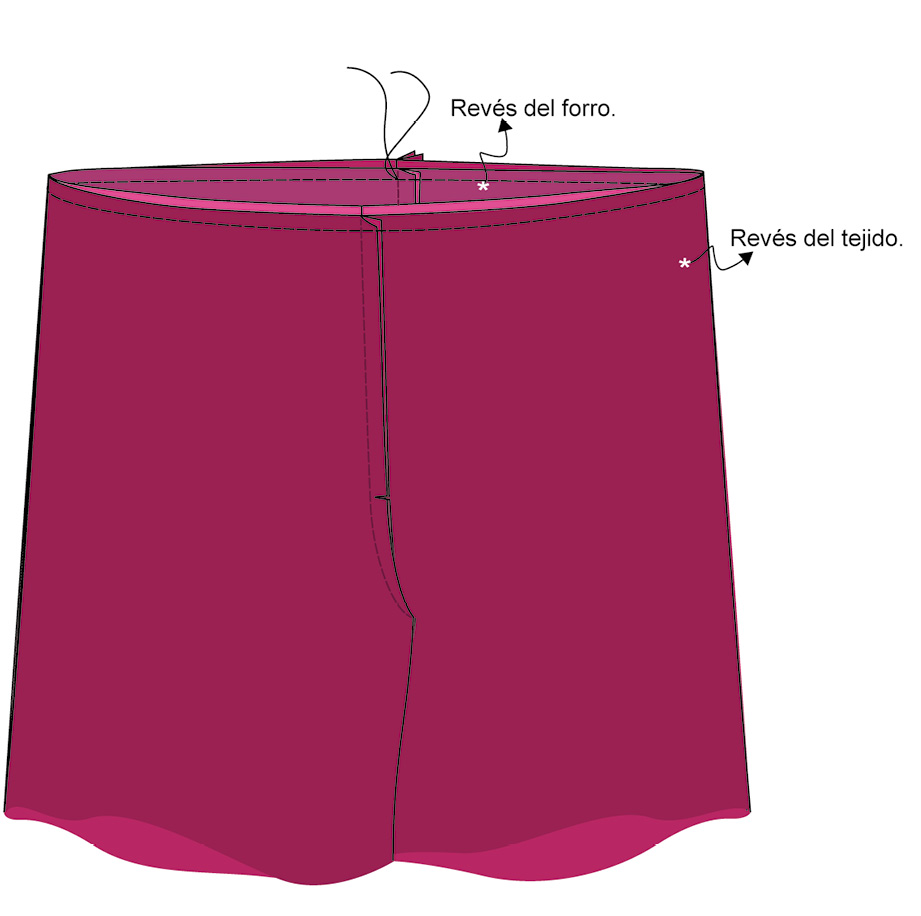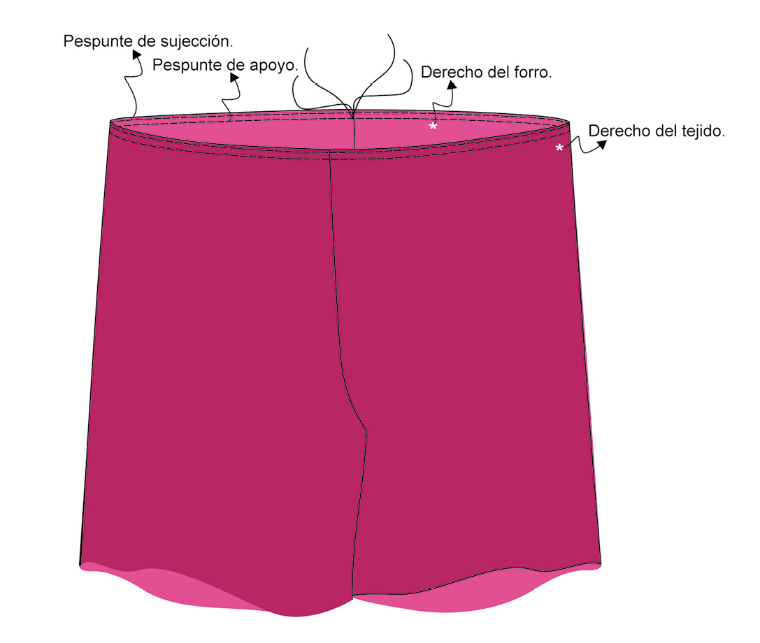 Haz una marca en el doblez de cada una de las partes. Cierra la cinturilla de goma uniendo con un pespunte ambos extremos, de tal forma que esta costura quede por el revés de la goma.