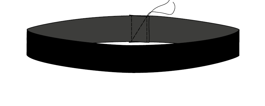 ▶ Corta la goma del bajo. Consulta la tabla de medidas para saber cuánta goma cortar según la talla que estés confeccionando. Únela por los extremos superponiendo un extremo sobre el otro, fijándolos con un pespunte.