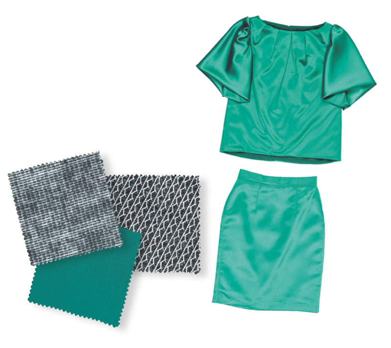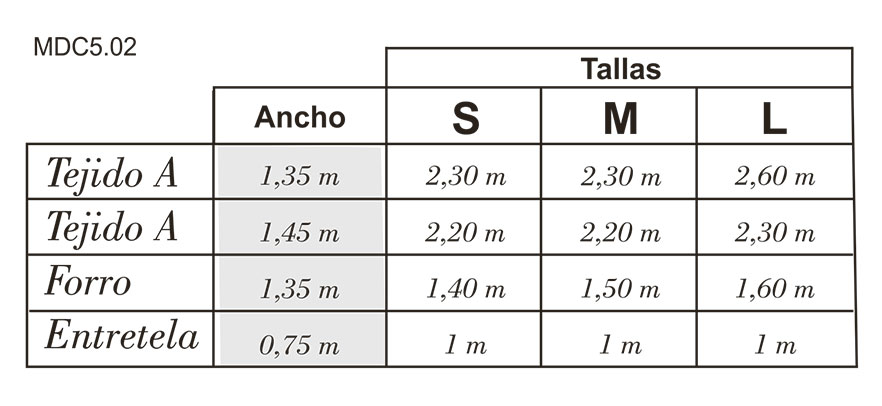 Escoge un tejido con algo de brillo y caída como crepé satén, satén, raso o crepé de China. También puedes utilizar cualquier otro de gramaje ligero y medio. Eso sí, siempre con algo de caída para favorecer el aspecto de los pliegues del escote.