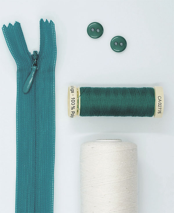 Introduce el dobladillo del bajo debajo del dobladillo que remata la abertura en el lado derecho y sujétalo con unas puntadas a mano. Consulta las diferentes formas de hacer un dobladillo y rematar la abertura con el capítulo minitutorial «Los dobladillos» —capítulo de los dobladillos—. Remata la costura de la cremallera con el forro, uniéndolo a esta con un punto invisible a mano.