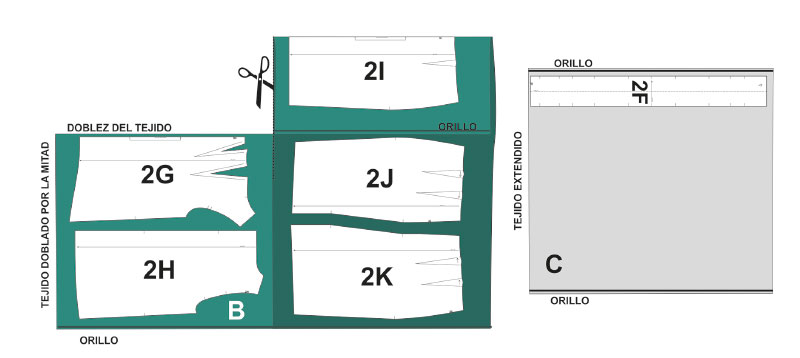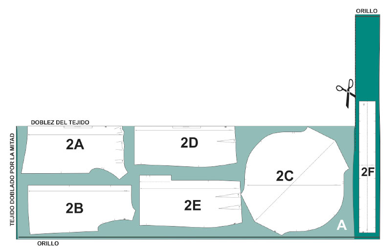 Antes de empezar organiza las piezas del modelo y los materiales que vas a necesitar. Recuerda que el margen de costura es de 1,5 cm. Lo que quiere decir que desde el canto del tejido a la línea de la costura tiene que haber 1,5 cm.