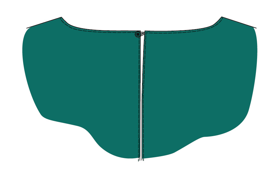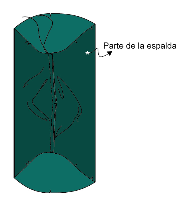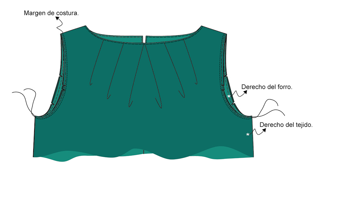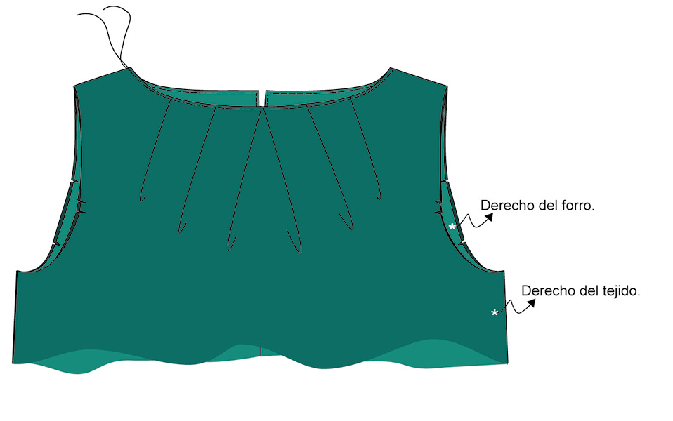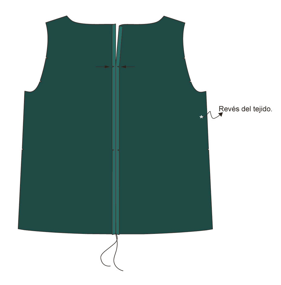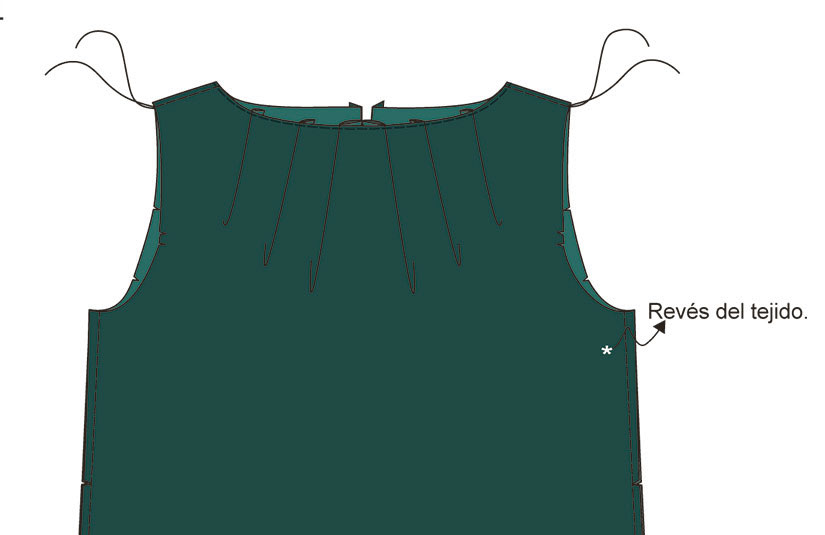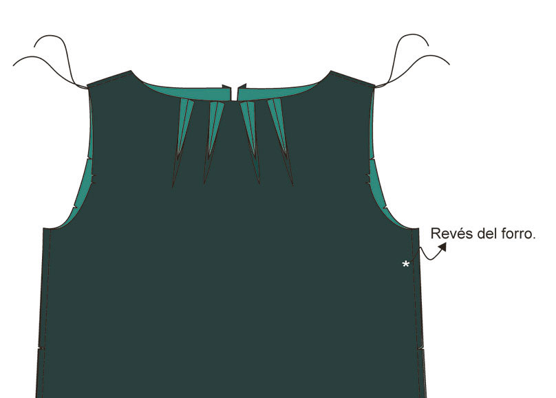 ▶ Une los dos cuerpos por el escote y la abertura de la espalda mediante una costura.