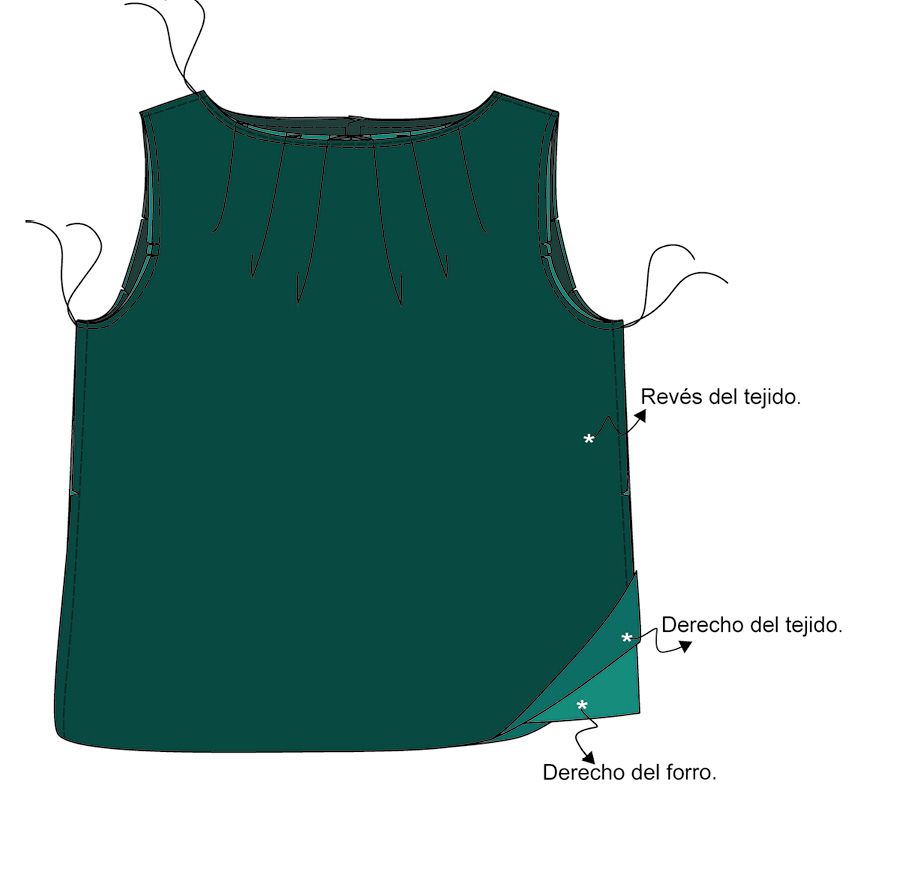 ▶ Cose las pinzas del delantero y la espalda en el tejido y en el forro.