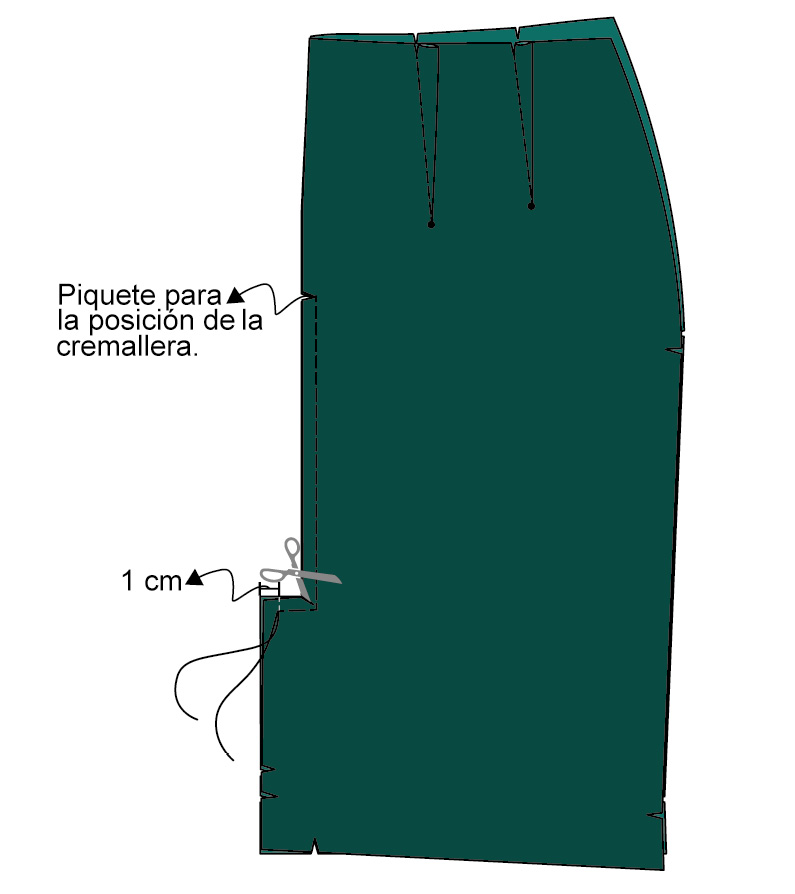Da un piquete en el ángulo que forma la abertura con la costura central —número 4 en el patrón—.