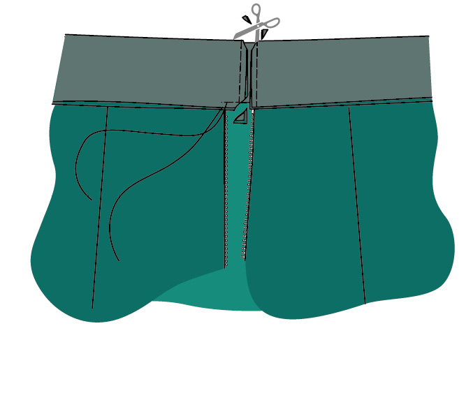 ▶ Corta en sesgo las esquinas de la cinturilla para que al voltearla queden definidas.