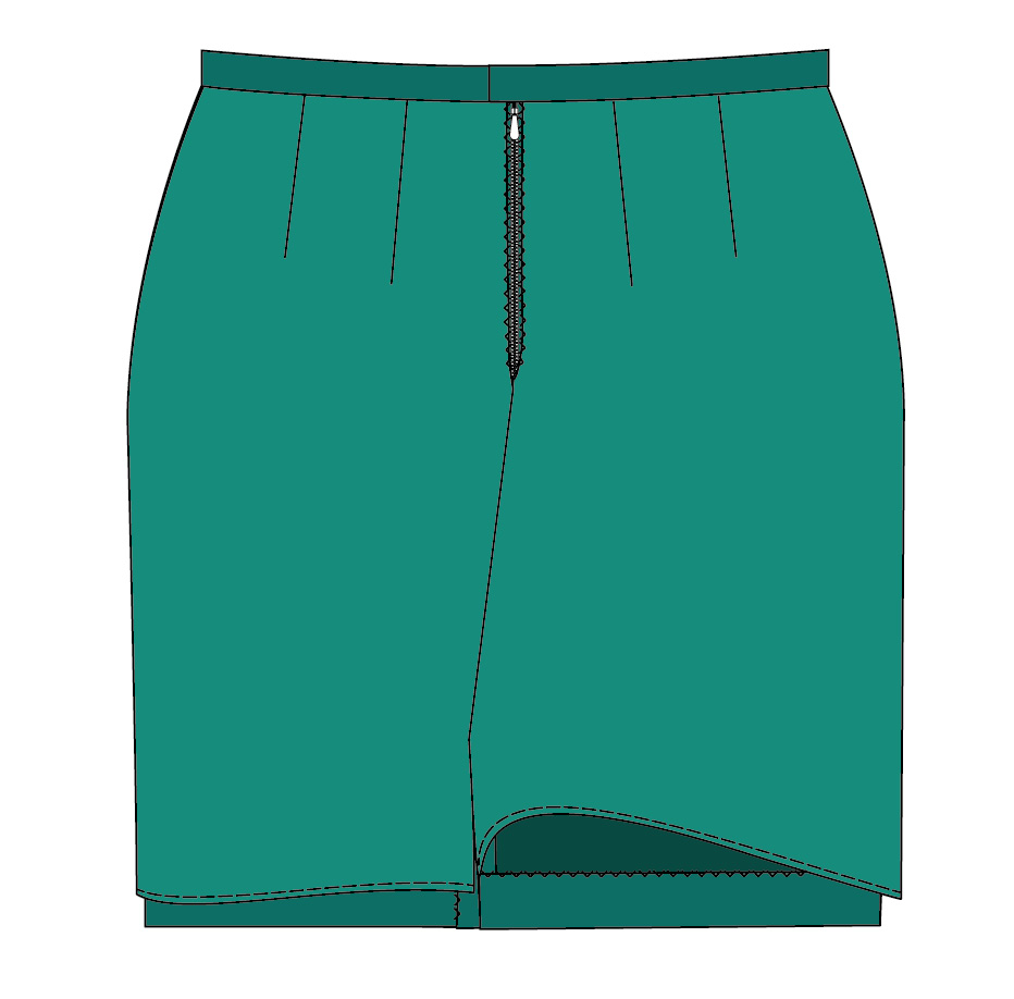 ▶ Remata el bajo del forro con un dobladillo doble de 0,5 cm sujeto con un pespunte. Plancha el bajo de la falda y cóselo a mano con una puntada invisible. Remata la abertura del centro de la espalda montando el dobladillo del bajo sobre el margen de costura del lado izquierdo de la abertura.