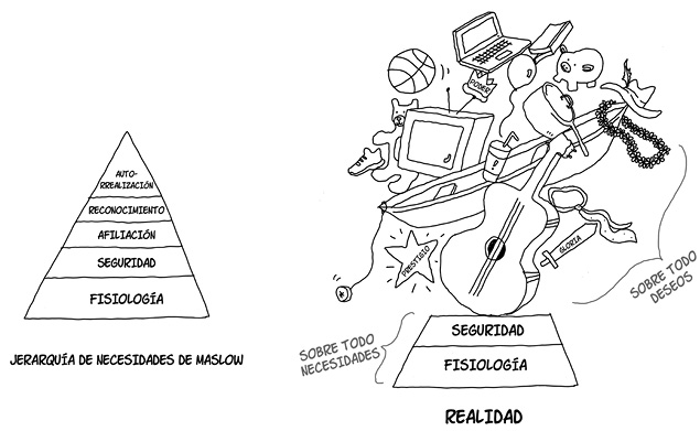 Con la evolución humana, las personas han pasado menos tiempo preocupadas por sobrevivir y más tiempo anhelando cosas: menos tiempo en el mundo de las necesidades y más en el mundo del deseo.