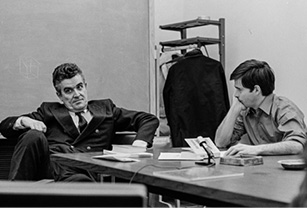 Girard en la primavera de 1971, con el teórico literario francés Gérard Bucher. |