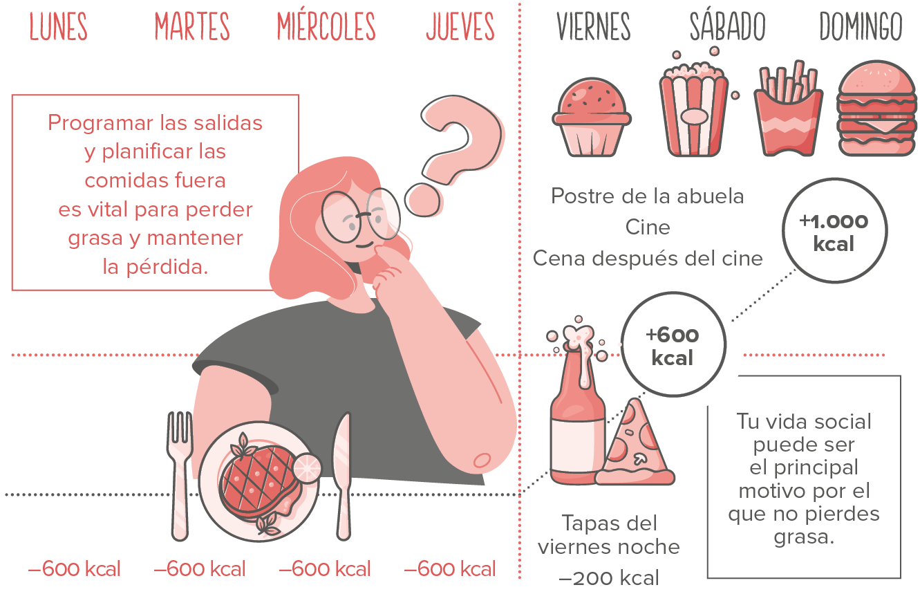 un fin de semana puede bastar para arruinar un plan de pérdida de grasa. Quizá no para engordar (ya que eso requiere más tiempo), pero sí para frenar la pérdida.