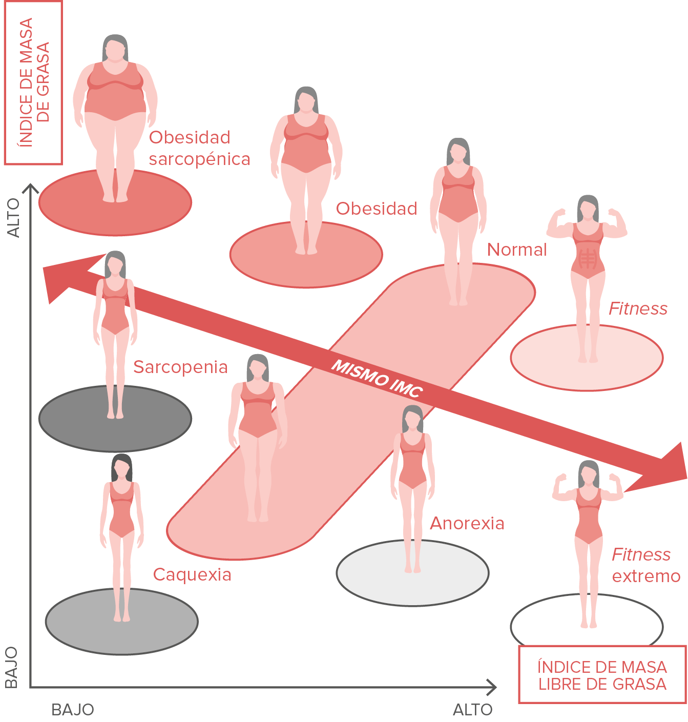 Sin embargo, aunque los antiguos se aproximaban bastante a la realidad mediante la observación, el peso y la corpulencia siguen siendo aspectos con bastantes limitaciones que merece la pena señalar. Básicamente, la idea generalizada de «peso excesivo» no deja de ser una simplificación dañina de lo que nos muestra el índice de masa corporal (IMC), que, básicamente, categoriza a las personas en bajo peso, normopeso, sobrepeso u obesidad según una fórmula matemática. En concreto, este índice se obtiene dividiendo la masa corporal (en kilos) por el cuadrado de la altura (en metros).