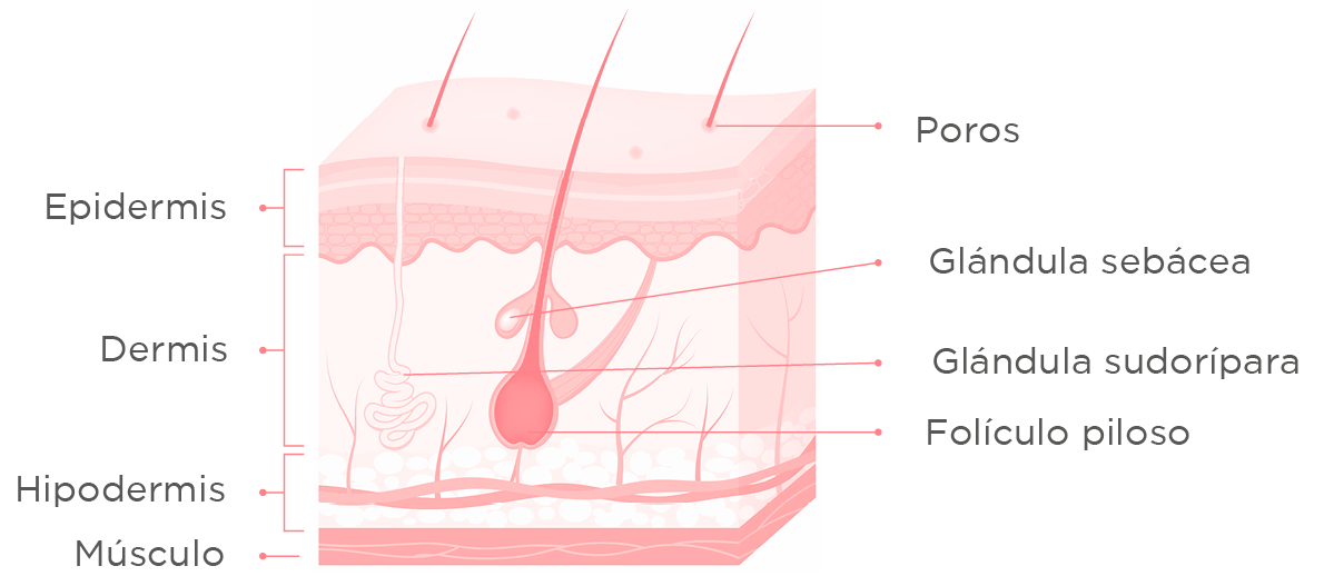 La piel es el mayor órgano del cuerpo. Pesa unos cinco kilos y tiene una superficie de unos dos metros cuadrados, pero no es el más largo: ahí gana el intestino. Además, la piel no es solo una capa externa o una cobertura sin más, sino un órgano lleno de vida y en continua regeneración. Contiene muchos tipos de células diferentes (queratinocitos, melanocitos, fibroblastos, células de Langerhans…) para poder cumplir con todas sus funciones, como la termorregulación, el sentido del tacto o la protección frente a agentes externos. Es sorprendente el nivel de implicación que tiene en nuestro día a día, desde regular nuestra temperatura, protegernos de agresiones, hacernos sentir sensaciones tan agradables como las caricias y un largo etcétera. Por eso, invertir tiempo en conocerla, entenderla y cuidarla es uno de los mayores regalos que os podéis hacer.