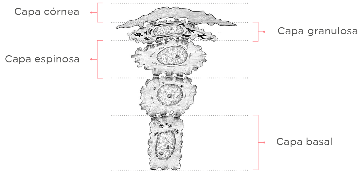 Algunas cremas que vemos publicitadas en televisión aseguran atravesar las «diez capas de la piel», pero muchos de estos anuncios terminan desinformando más que informando, porque la piel solo tiene tres capas. Lo que sucede es que la capa más superficial, la epidermis, de la que ahora hablaremos, está formada a su vez por varias hileras o filas de células compactas. Estos anuncios lo que están diciendo es que esa crema es capaz de atravesar la primera capa de la piel, lo cual no es nada fácil. Vamos a ver por qué.