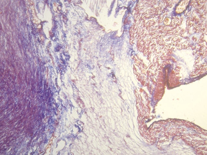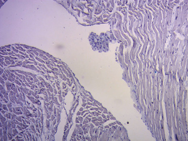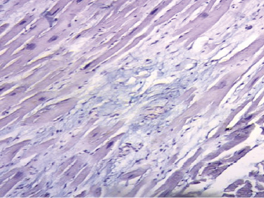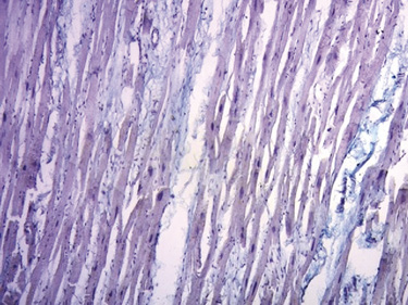 Figura 75. Ácido hialurónico teñido con Alcian blue (15x) (corazón humano adulto).