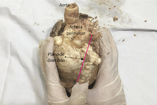 Figura 45. Corazón de embrión humano. Línea de corte (23 semanas de gestación).