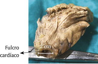 Figura 43. Fulcro cardíaco en un corazón humano de diez años de edad (explante).