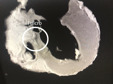 Entre los hallazgos que muestra la investigación se encuentra que la arquitectura del miocardio presenta un punto de soporte que es de la mayor importancia, denominado fulcro cardíaco. Es el apoyo del músculo cardíaco, el amarre en el comienzo y al final de las fibras del miocardio continuo. El fulcro es un núcleo cuya estructura histológica es diferente de acuerdo con los especímenes analizados en la investigación, ya que puede presentarse de carácter óseo, condroide o tendinoso. Sin este apoyo sería imposible para el corazón lograr su función de alta potencia al punto de eyectar la sangre a una velocidad de 200 cm/s.