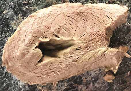 Figura 9. Apex en corazón de bóvido. Se puede observar que su contorno es absolutamente muscular y que corresponde al ventrículo izquierdo en su totalidad.