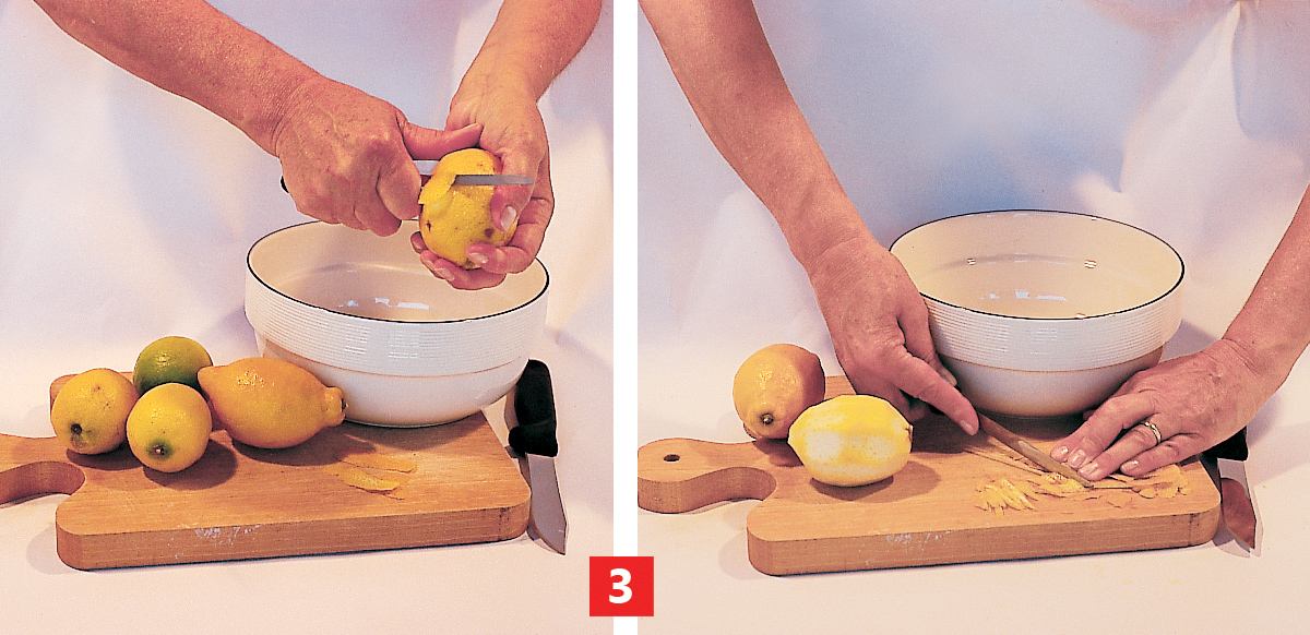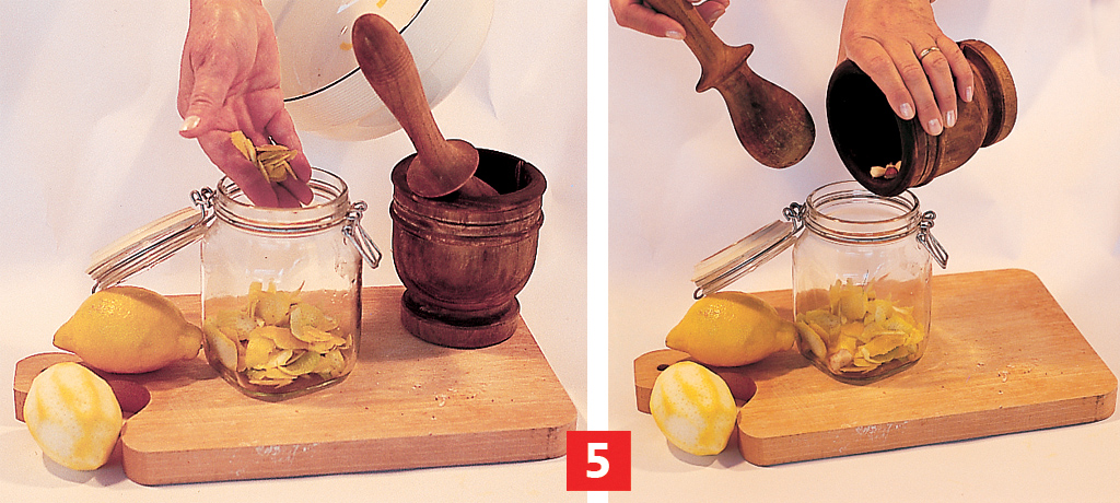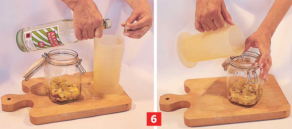 La secuencia fotográfica ilustra la forma más corriente de fabricar el clásico licor de limón.