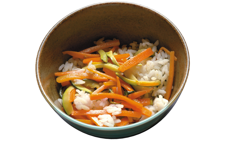 El arroz y la cocción pilaf En la cocina oriental el arroz es el acompañamiento indispensable de todos los platos, tanto los de carne, como los de pescado o verduras. Originario de Extremo Oriente, el arroz se ha difundido por todo el mundo y es uno de los alimentos más cultivados del planeta. Se utiliza sobre todo el arroz de la variedad basmati (cuyo nombre deriva de una flor que crece en los arrozales de los que procede), producido y consumido en todo Oriente. Se diferencia de los arroces cultivados en España (variedad japónica) por su pasta más dura y su envoltura más cristalina, que suelta el almidón con más dificultad. Esta característica hace que el basmati sea poco adecuado para los arroces a la cazuela, pero lo hace perfecto para todas aquellas preparaciones en las que es importante que los granos queden bien sueltos. El arroz, en general, se utiliza cocido en agua y sal, cocido al vapor, con el agua aromatizada al gusto con clavos de olor, laurel o granos de pimienta blanca, o preparado con cocción pilaf. Este método de cocción, característico dados sus orígenes orientales, es especialmente adecuado para la cocina china. En general se utiliza arroz basmati, que se lava bajo agua corriente para eliminar los residuos de polvo de almidón de la producción. Se deja escurrir en un paño y después se tuesta durante 5 minutos en una sartén donde previamente se ha sofrito la cebolla con mantequilla. Aparte, se pone a hervir agua salada con laurel, pimienta blanca y especias al gusto. Se añade el agua al arroz hasta cubrirlo completamente y rebasarlo un dedo. Se tapa y se pone en el horno ya caliente a 180 °C durante 18 minutos aproximadamente. Fuera del horno se desgrana con un tenedor en un plato grande y se mezcla con una nuez de mantequilla. |