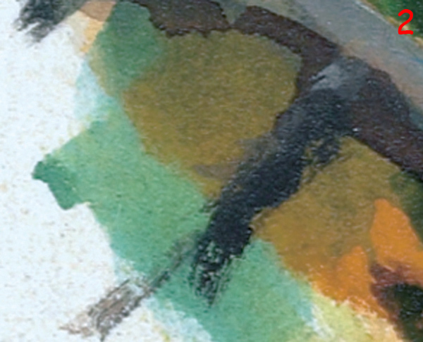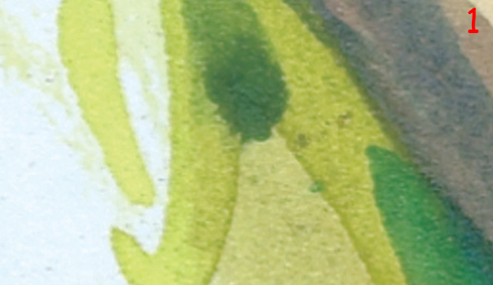 1. Aquí se insistió en la pincelada, con lo que el color se mezcló sobre el papel. |