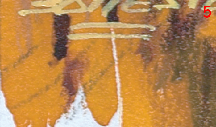 5. En esta zona, se dio una primera capa de color que sirvió de base para un trabajo de pincelada de arrastre más elaborada. |