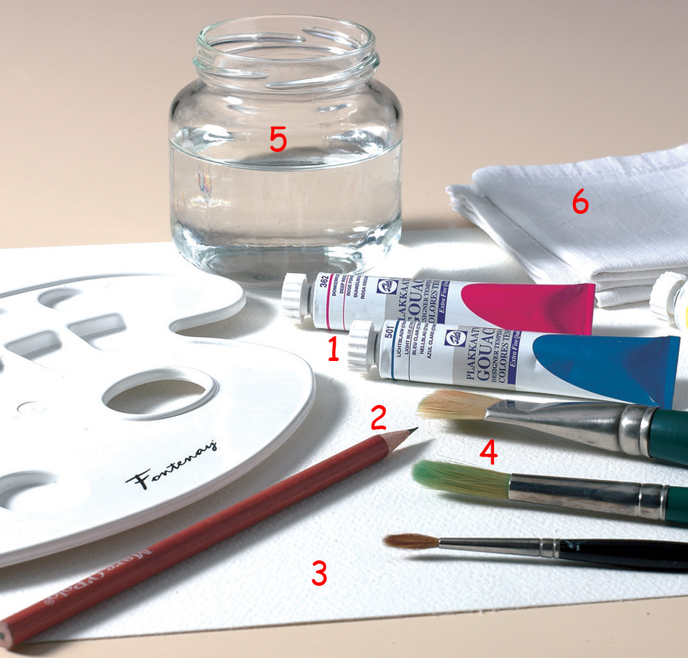 Material necesario 1. Guache 2. Lápiz 3. Papel para guache 4. Pinceles 5. Bote con agua 6. Trapo |