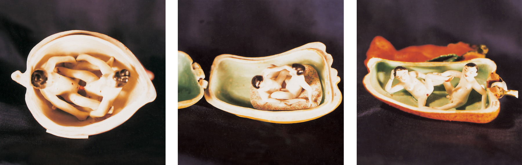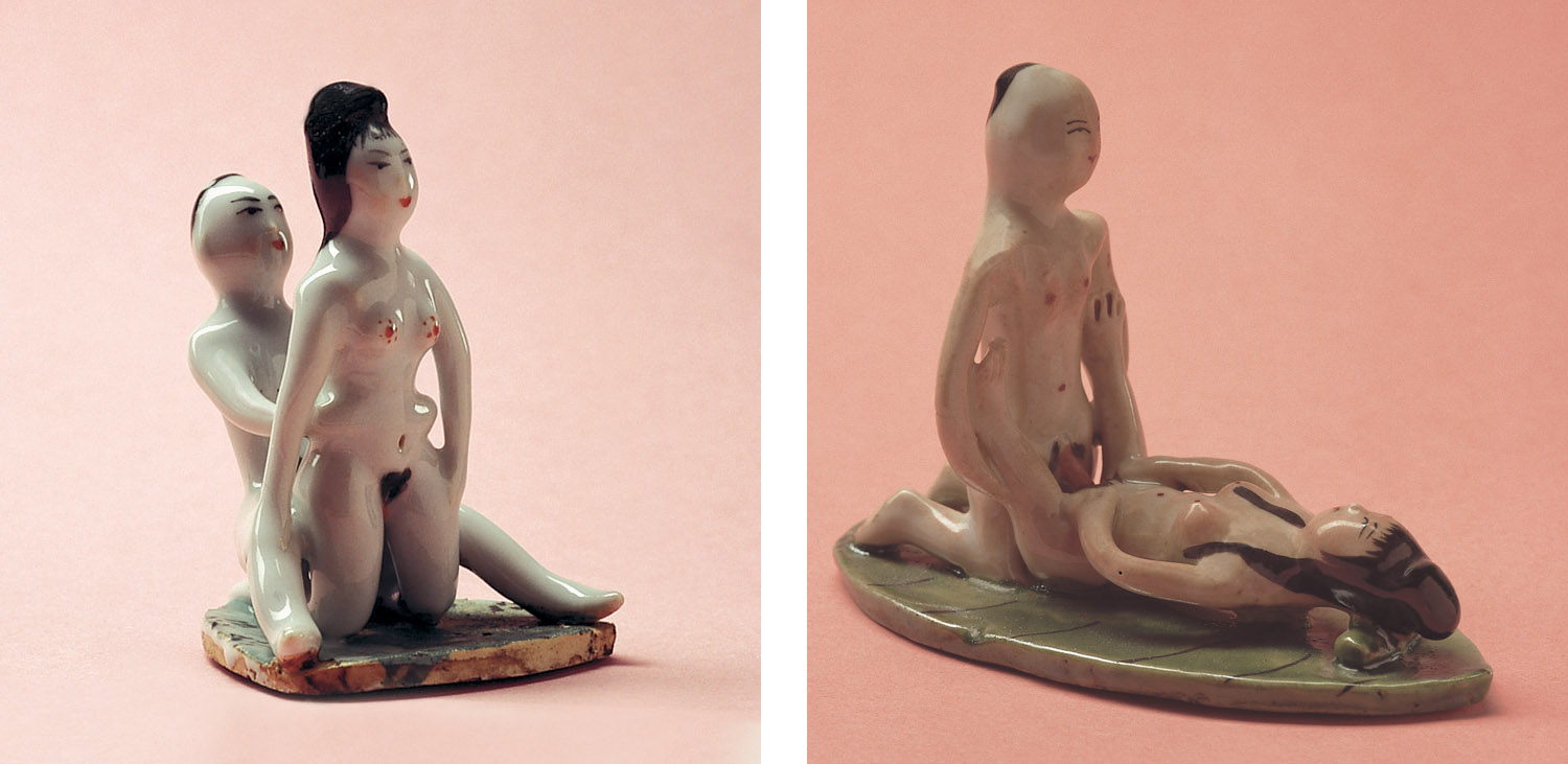 Dans les images érotiques des peintures sur soie ou sur porcelaine, des gravures sur bois ou des illustrations, la sexualité n´est jamais montrée à l´état cru ou de façon pornographique, mais toujours dans un contexte de beauté et d´harmonie. Des détails symboliques et pleins de sens enrichissent ces représentations. Ils évoquent la tendresse qui occupe une place de prédilection dans l´iconographie chinoise. Toutefois ces détails sont difficilement déchiffrables pour des Européens : les visages froids et impassibles des amoureux sont bien loin d´un embrasement des passions.