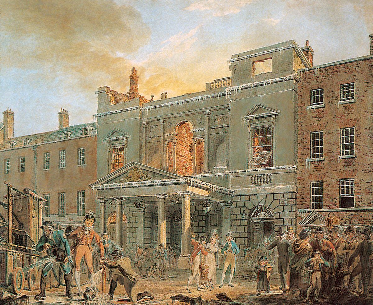 4. J.M.W. Turner, Le Panthéon, le matin après l’incendie, RA 1792, aquarelle, 39,5 x 51,5 cm, Turner Bequest, Tate Britain, Londres. Le Panthéon, dans Oxford Street à Londres, a été brûlé par un pyromane le 14 février 1792. Turner y avait travaillé comme décorateur durant l’année précédente.
