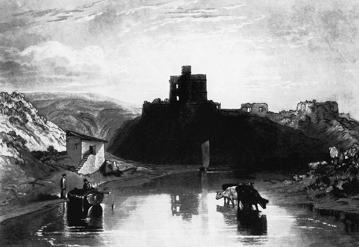 10. J.M.W. Turner, Norham Castle on the Tweed, mezzo-tinto et eau-forte pour le Liber Studiorum, 1816, Tate Britain, Londres.