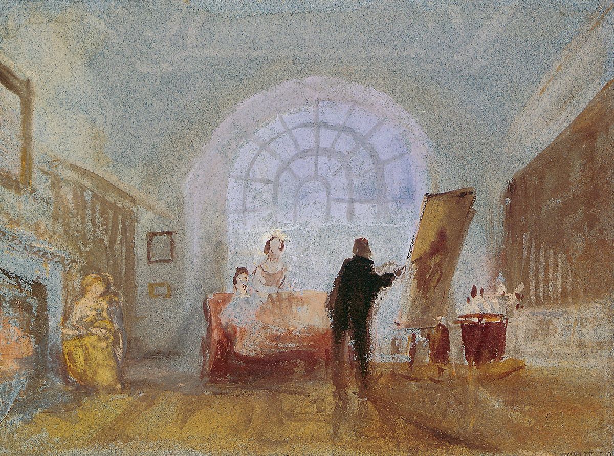 15. J.M.W. Turner, L’Artiste et ses admirateurs, vers 1827, aquarelle sur papier bleu, 14 x 19 cm, Turner Bequest, Tate Britain, Londres.