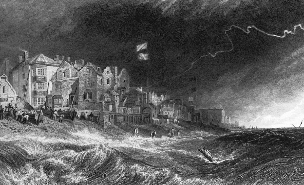 16. William Radclyffe d’après J.M.W. Turner, Deal, Kent, gravure sur cuivre réalisée pour la série Les Vues pittoresques de la côte Sud, 1826, British Museum, Londres.