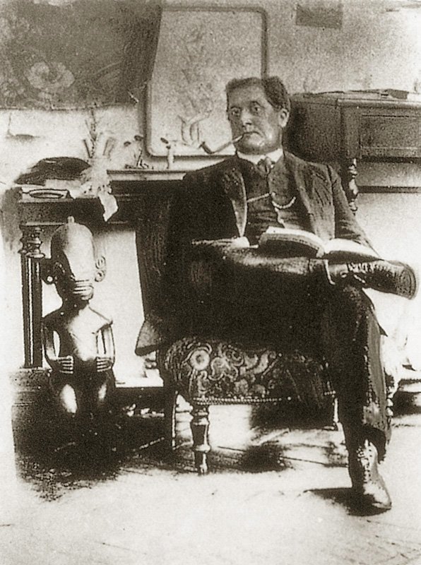 1907: Les Demoiselles d’Avignon. Entdeckt im Sommer in der ethnographischen Abteilung des Palastes Trocadero die afronegroide Kunst. Bekanntschaft mit Daniel-Henry Kahnweiler und Georges Braque. Cézannes Retrospektive im Salon d’Automne. Alfred Jarrys Tod (1. November). Schnitzt die erste Holzskulptur.