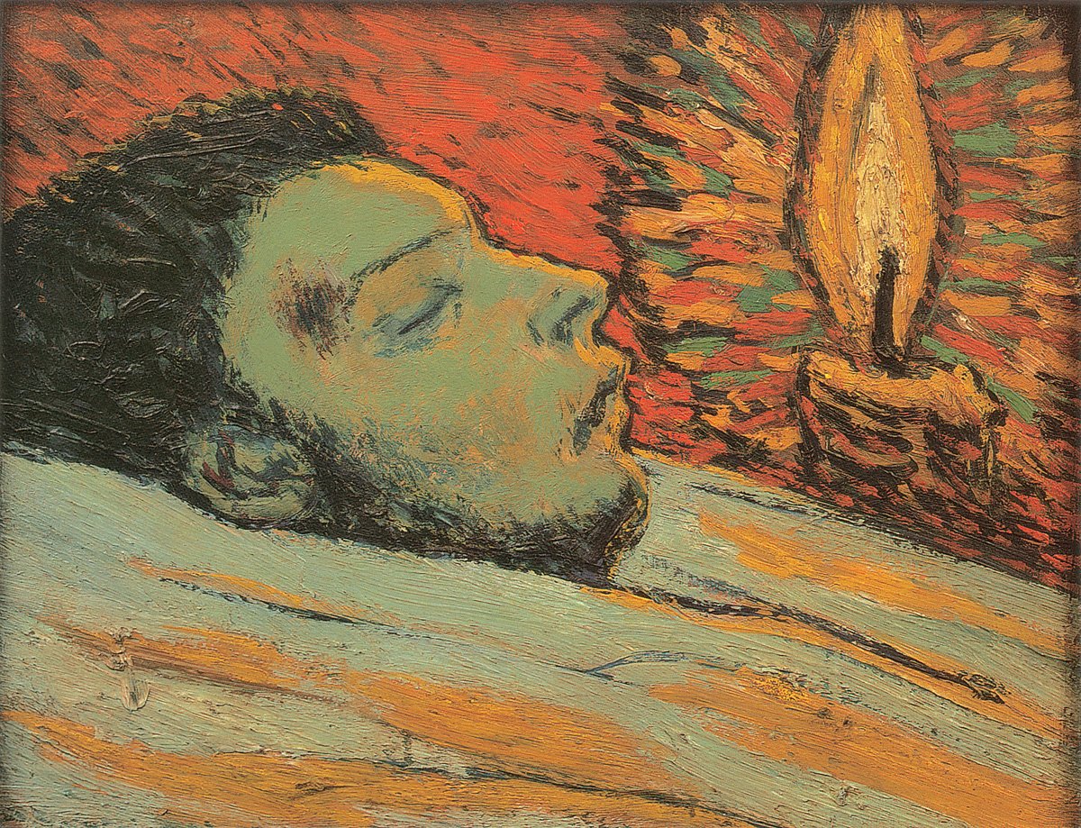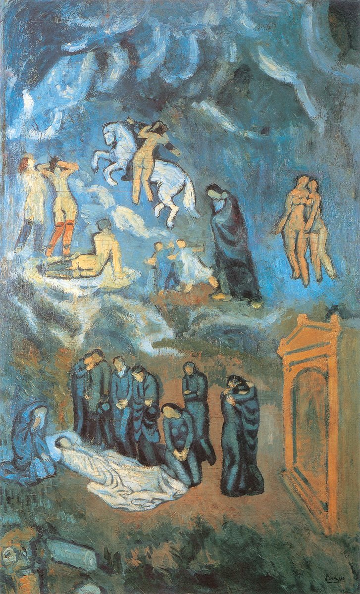 Als eines Gemäldes würdig findet Picasso in den Jahren 1899-1900 nur solche Sujets, in denen die „letzte Wahrheit“, die Vergänglichkeit des Lebens, die Unvermeidlichkeit des Todes durchscheint. Die Zeremonie des Abschieds von einem Entschlafenen, Wachen am Sarg, Agonie eines Invaliden am Sterbebett im Krankenhaus, Szene im Zimmer eines Verstorbenen oder am Bett einer Sterbenden: der nichtsnutzige Gatte tut Abbitte… ein Geiger spielt… ein vergrämter langhaariger Dichter… der Liebhaber auf Knien… ein junger Mönch beim Gebet. In solchen Variationen arbeitete Picasso dieses Thema aus (im Barcelonaer Picasso-Museum werden nicht weniger als 25 graphische und 5 malerische Skizzen aufbewahrt). Schließlich malte er eine große (ca. 130 x 220 cm) Komposition Derniers moments (Letzte Augenblicke), die Anfang 1900 in Barcelona gezeigt wurde, dann in demselben Jahr auf der Weltausstellung in Paris.