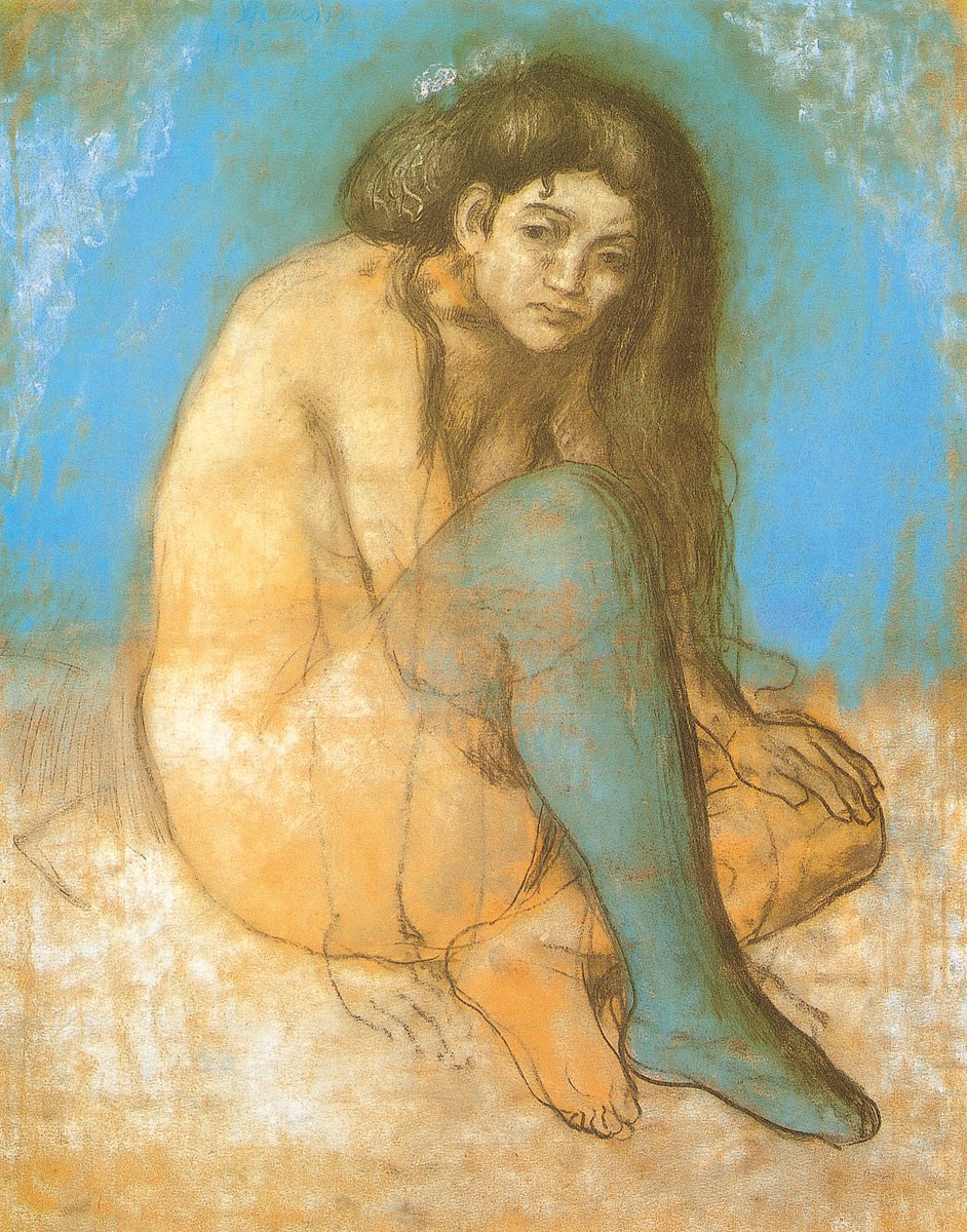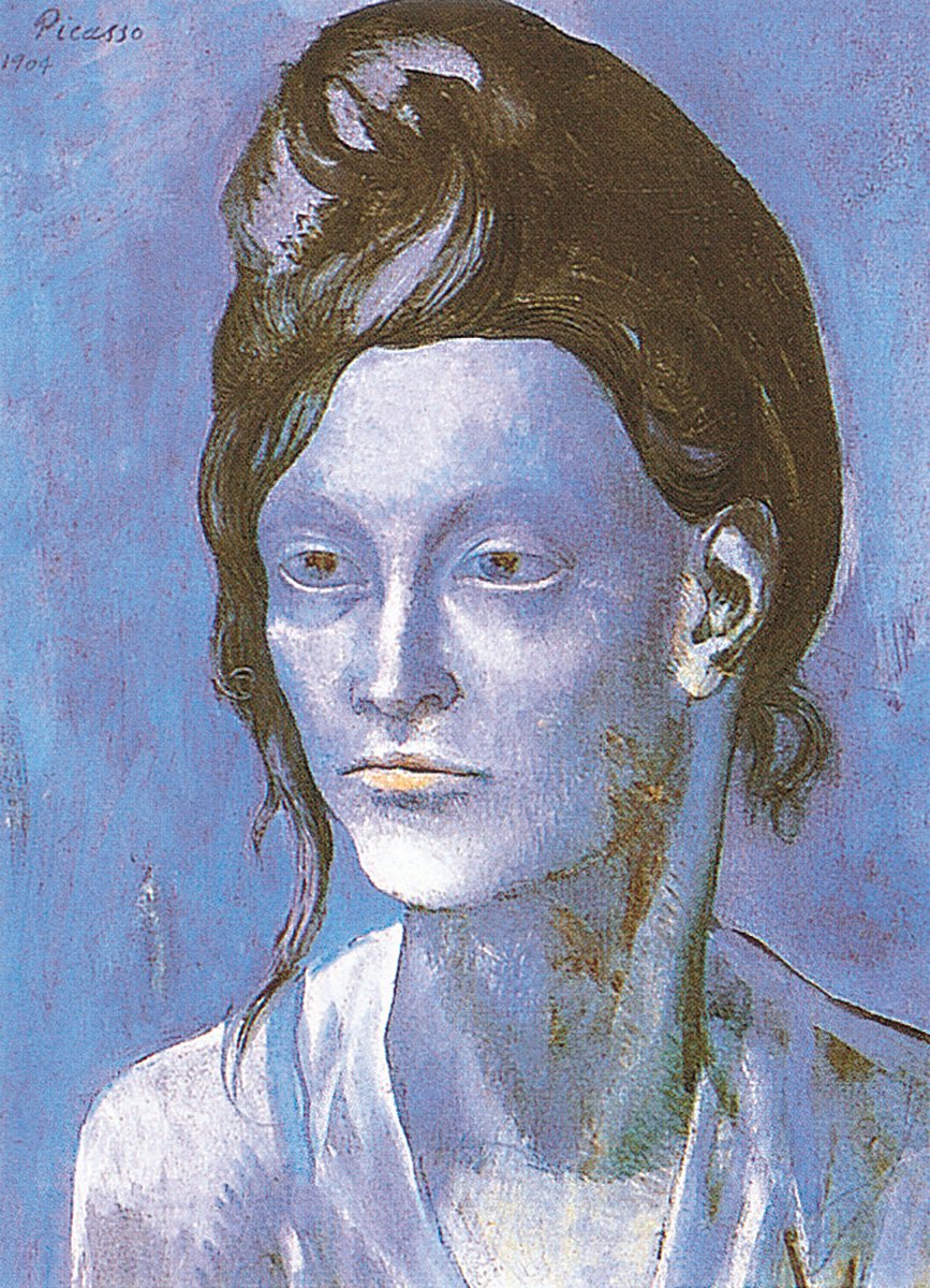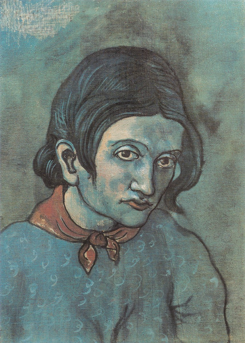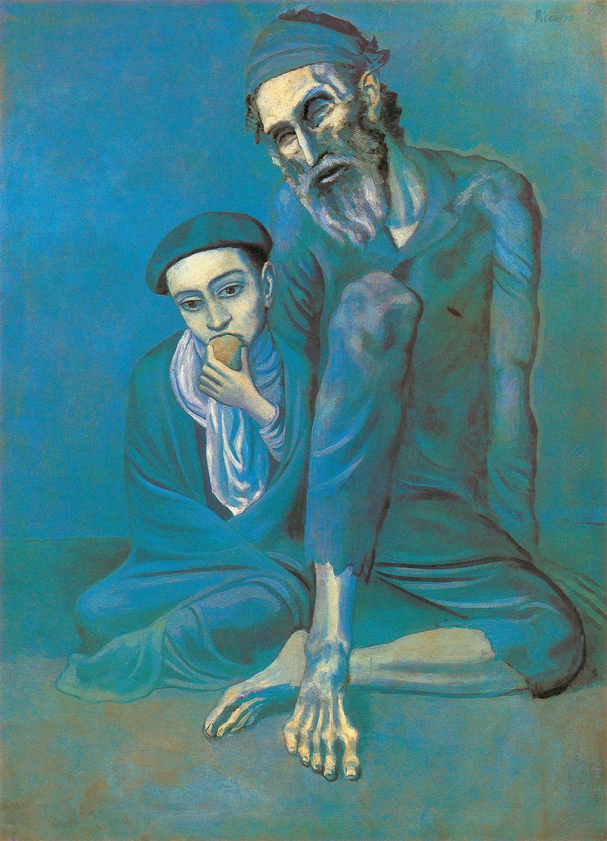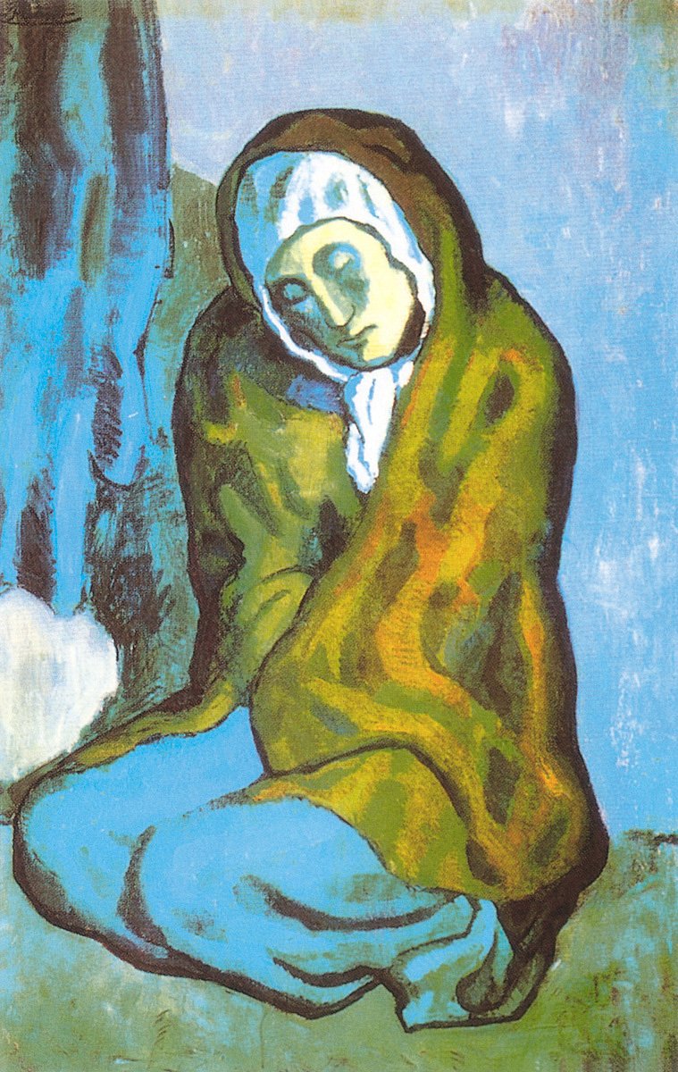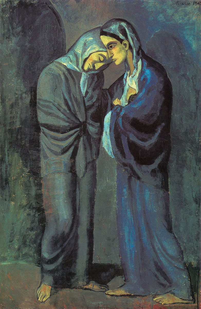 Das Blau ist die malerische Metapher des Kummers und der Trauer. Und nicht zufällig, sondern aus dem Wunsch heraus, noch unmittelbarer auszudrücken, drängt es Picasso im Jahr 1901 zur Skulptur. Das von Daix festgestellte Vorherrschen der Form in der Komposition ist zweifellos ein Zeichen dieses Interesses, und Picasso wendete sich damals wirklich dem Modellieren zu, denn es half ihm bei der Konkretisierung seiner plastischen Ideen, entsprach aber auch seinem Hang zu strenger Selbstbeschränkung, zum Asketismus der Ausdrucksmittel.