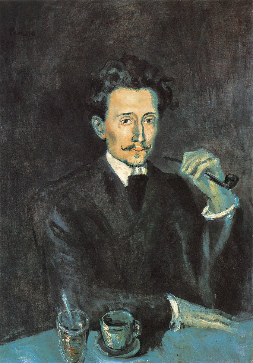 Das Bildnis des Dichters Sabartés stammt, nach Sabartés selbst, eben aus diesem Entstehungsmoment der Blauen Periode: Es war in Paris, im Oktober/November 1901 ausgeführt worden. Es zeigt den Barcelonaer Freund Picassos, nach seinem ersten Eintreffen im herbstlichen Paris, dieser riesigen grauen Stadt, in der er sich einsam und verloren fühlte.
